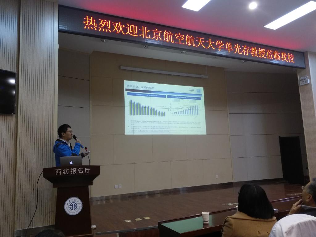 2017年11月16日下午四点,在金花校区西纺报告厅,电信学院邀请北京航空航天大学单光存教授做了主题为“人工智能与高精度测控”的学术报告会。本次报告由米兰·(milan)中国副院长李云红教授主持,电信学院院长赵广社教授、学院教师和研究生共100余人参加。