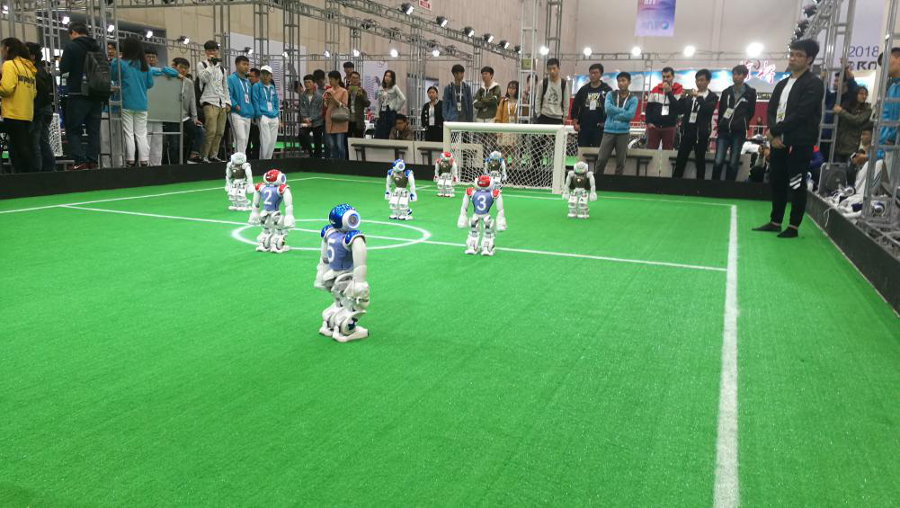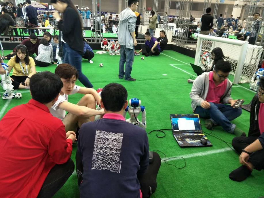 在刚刚结束的2018RoboCup机器人世界杯中国赛标准平台组的比赛中,由我院教师卢健、校工程训练中心教师支双双指导,我院2016级研究生何耀祯为队长,2017级研究生刘通、陈旭、本科生夏秀鑫、周洋、盛铁雷、冀莹泽、董哲宇(计算机学院)为队员,以及六台nao仿人智能机器人组成的XPU足球队,取得第四名的成绩。
