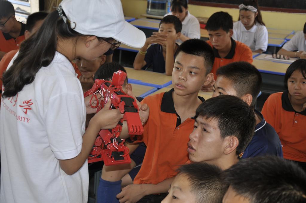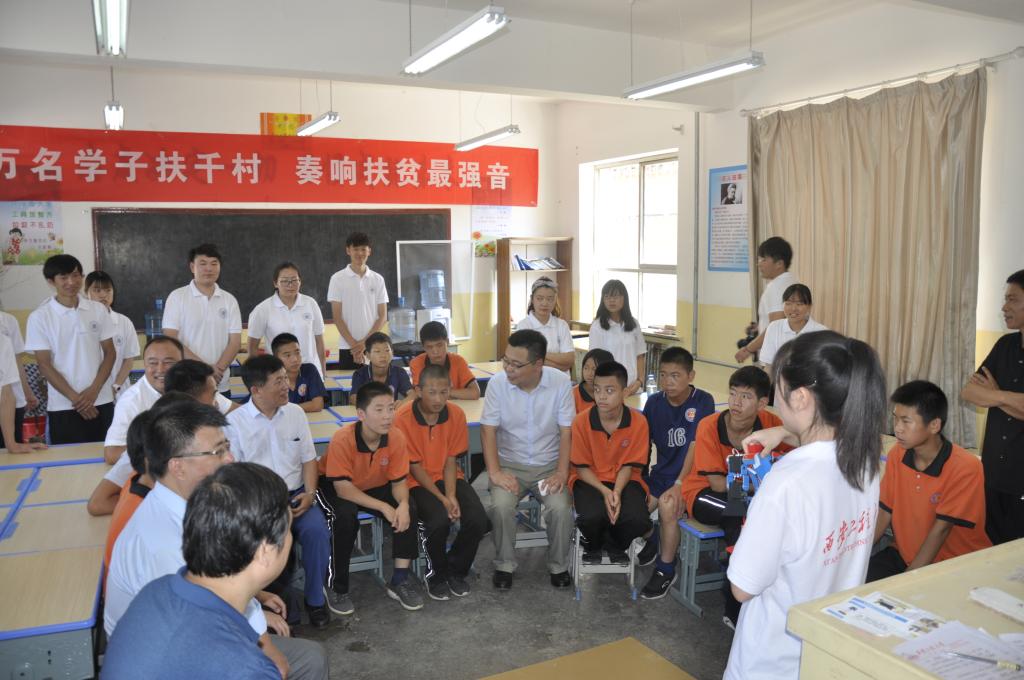 启动仪式结束后,实践队员都回到了各自安排的任务当中。科普宣传队员们来到教室为另一班的小朋友讲解机器人。我校领导也前来慰问实践队员们,现身科技和美术支教课上与孩子们互动交流,给孩子们和实践队员送来温暖。之后,在延长县一行人的陪同下,前往黑家堡镇孙吉屯村走访慰问我校结对帮扶贫困户,为建档立卡学生送去鼓励和关怀。
