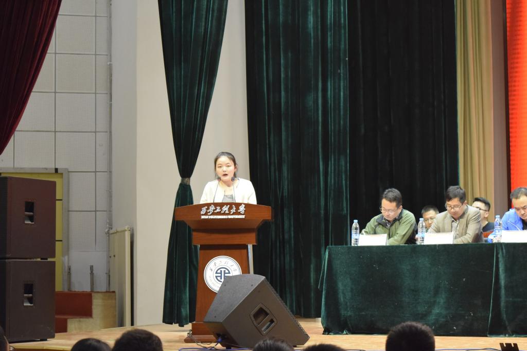 接下来是教师代表刘秀平发言,作为一名教师,刘秀平希望18级新生们能够奋发进取,给自己的大学生活定下一个目标,不光是学习,还要提升自己各方面的知识,定好位、走好路、成好才。