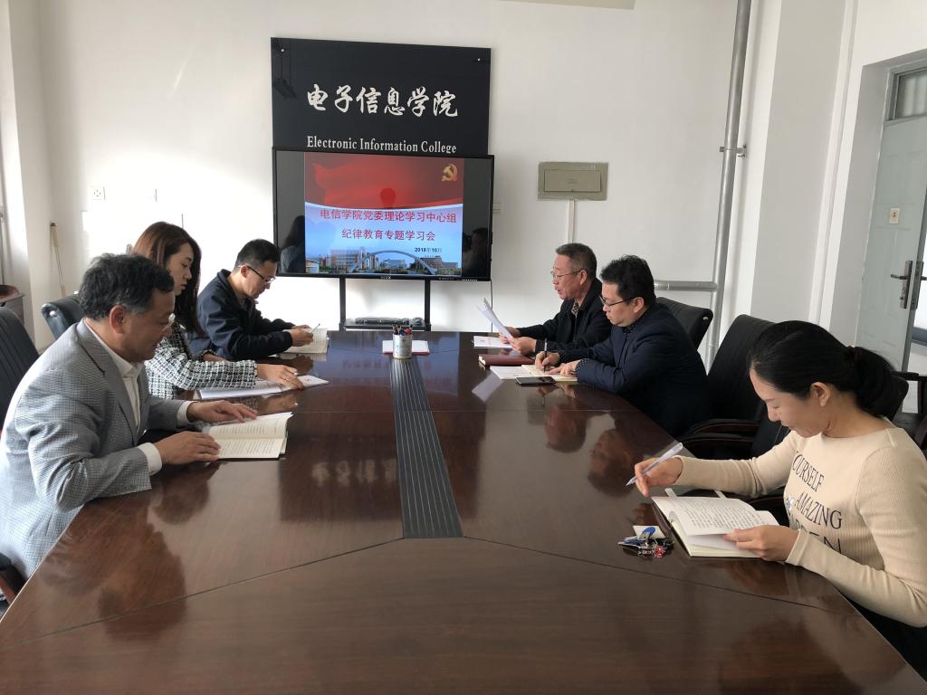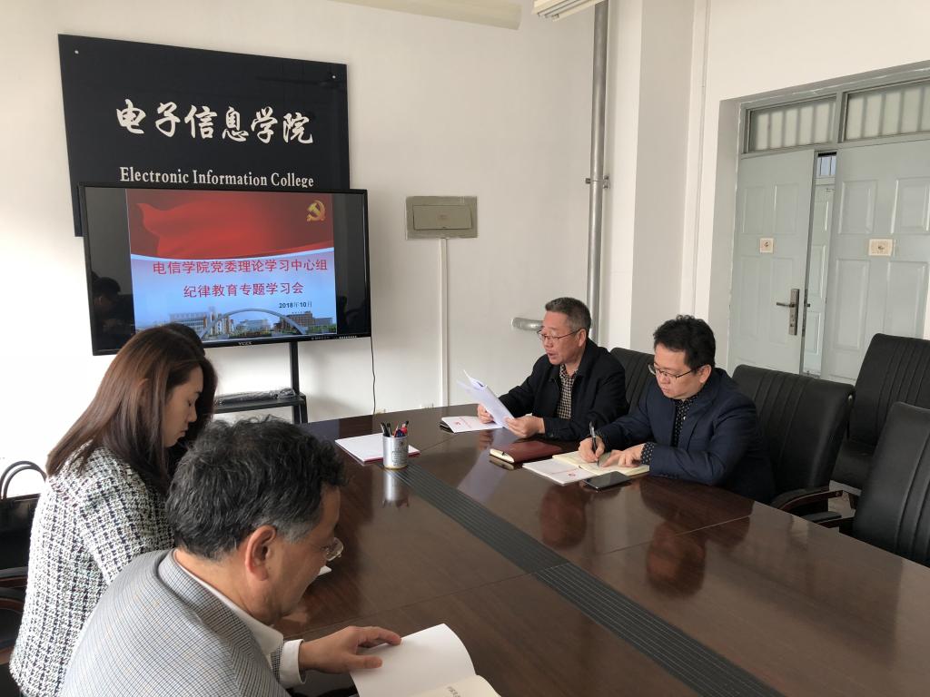 为深入贯彻落实党的十九大报告“加强纪律教育,强化纪律执行”的要求和中央纪委二次全会精神,按照《中共陕西省委高教工委关于在高校开展纪律教育学习宣传活动的通知》要求,2018年10月15日上午,米兰·(milan)中国党委理论学习中心组在电信楼414会议室召开纪律教育专题学习会,学习新修订的《中国共产党纪律处分条例》(以下简称《条例》),学院党委理论学习中心组全体成员参加了学习,会议由学院党委书记杨恩科主持。