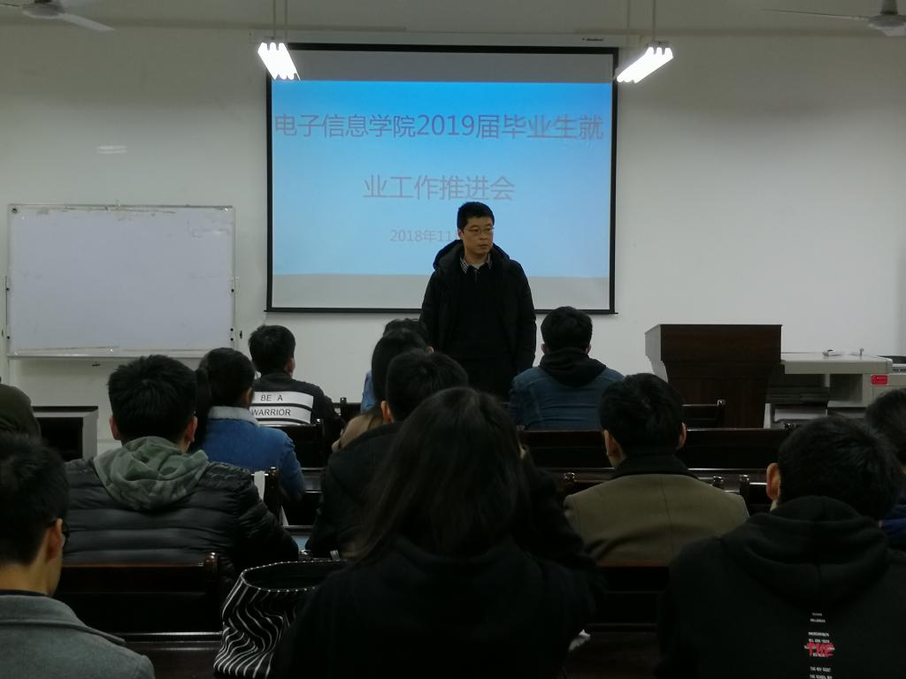 2018年11月6日下午13:00,米兰·(milan)中国在电信楼418室召开2019届毕业生就业工作推进会。本次会议由赵立涛主持,2015级辅导员杨松然、毕业班班团干部及班级学生代表70余人参加了会议。本次推进会分为两个环节,分别是关于就业方面的工作安排及相关注意事项和学生答疑解惑。