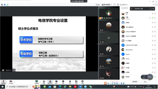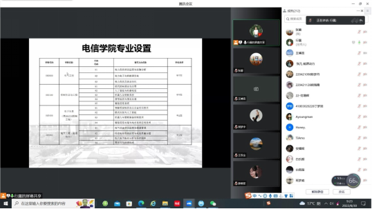 为了帮助新生更快融入电信学院大家庭,开辟人生的新征程,2022年8月30日上午9:00,电信学院通过腾讯会议平台召开了2022级全体研究生大会,安排新学期开学相关事项。电信学院副院长张蕾、党委副书记周晓惠、研究生工作秘书行露、研究生辅导员周梦宇参加了此次会议。本次会议由行露主持。