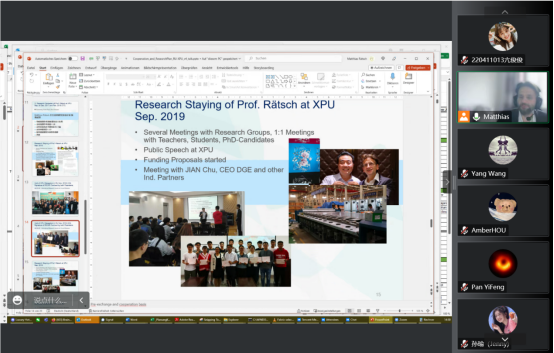 在交流环节,Matthias教授和参会同学代表在人工智能方面进行了深入讨论,给同学们当前进行的研究领域提供了许多新的思路和方法。随后,国际合作交流处侯老师简单地对研究生期间公派交流合作项目进行了介绍。
