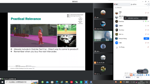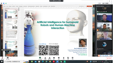 Matthias 教授随后介绍了他的研究平台“智能机器人的视觉系统ViSiR)”以及研究团队“机器人世界杯团队(RT-Lions)”。详细介绍了两校经过前期科技合作交流在人机交互、机器人力学、自主导航和机器学习这四大领域所取得的成果。Matthias 教授也对该研究团队在人工智能、深度学习、机器人应用所取得的成果进行了展示和介绍。