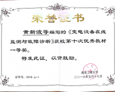 [3]编写的教材《变电设备在线监测与故障诊断》获得学校优秀教材一等奖。
