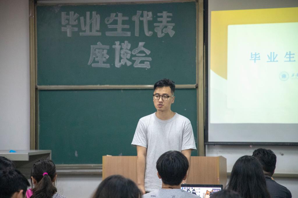 期间,杨松然向大家讲述了自己的大学经历,在他的带动下,毕业生代表纷纷踊跃参与,向大家分享了自己大学中最难忘的事,字里行间透露着对母校的感激与不舍。同学们交流的同时也提出了很多诚恳的意见,老师们认真听取了同学们的意见,并逐一进行了详细地解答,表明学院会以问题为导向,不断改进,不断创新,更好地服务学生。