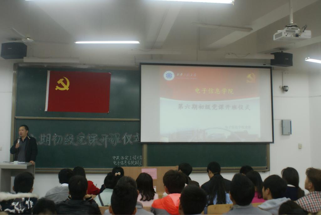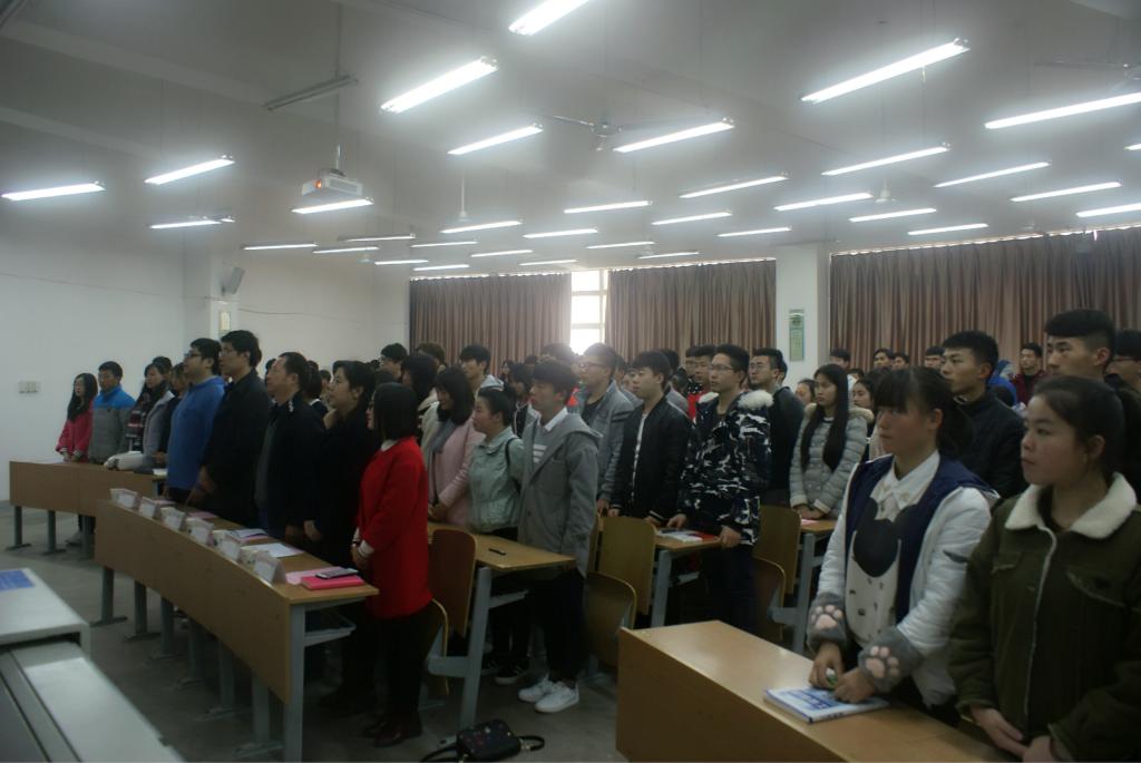 开班仪式在奏唱国歌中拉开序幕。孙晓宁为开班仪式致辞,首先对参加培训同学表达了热烈的欢迎和对组织初级党课培训工作人员表示衷心的感谢。他结合我校关于“两学一做”学习教育工作精神,明确学院以建设学习型党组织为抓手,以立德树人为目标,通过组织和培训学生骨干,发挥基层党组织的战斗堡垒作用。他向同学们提出了三点希望:一是希望同学们能够珍惜机会,通过不断学习,进一步坚定理想信念;二是希望同学们能够严于修身、严于律己,发挥先锋模范作用,孙晓宁还引用习近平总书记“人生就像扣扣子”,希望同学们从小事做起,从一言一行做起,扣好人生的第一粒扣子;三是希望同学们能够脚踏实地,走好这“万里长征第一步”,认真学习理论知识,并学以致用,主动接受党组织的各种考验,早日成为一名真正的共产党员。