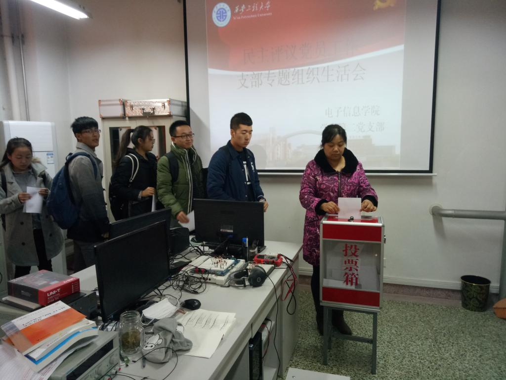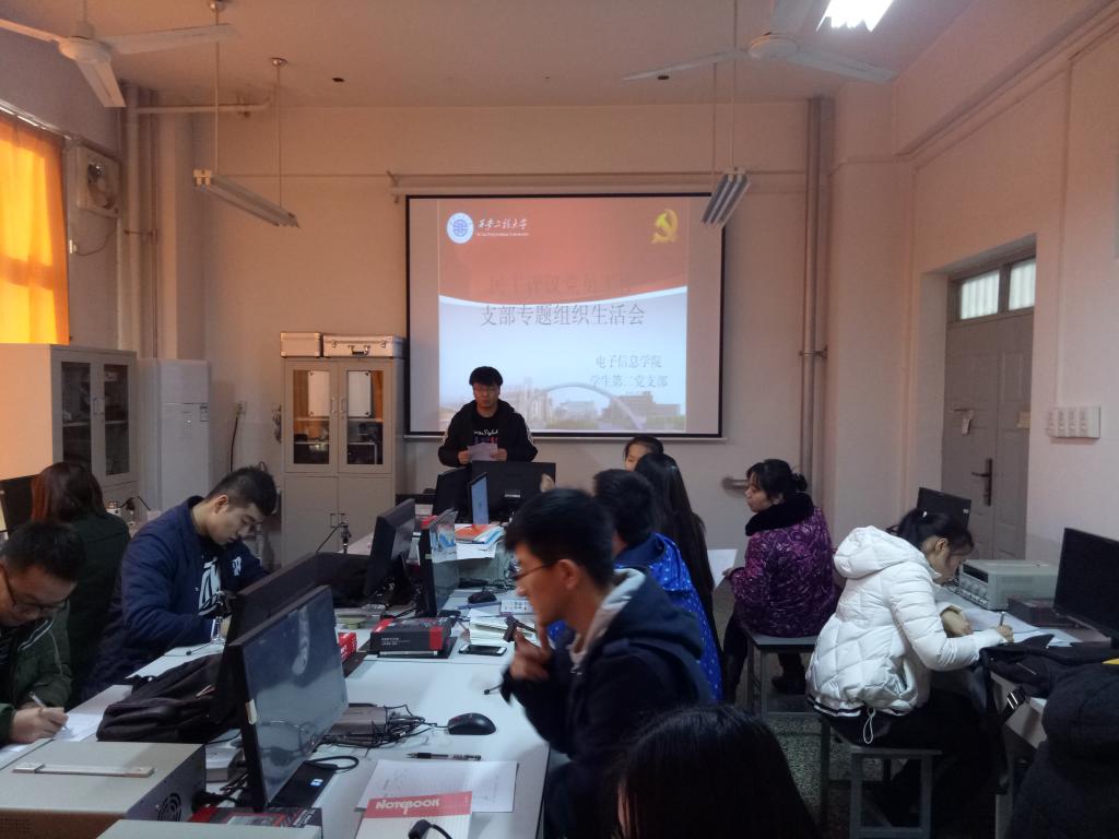 12月8日,在电信楼实验室,学院学生第二党支部召开了2016年度党支部工作考核支部(扩大)会议及开展民主评议党员工作,支部书记朱宇军等21 名党员、谢鹏越等17名群众代表参加会议。