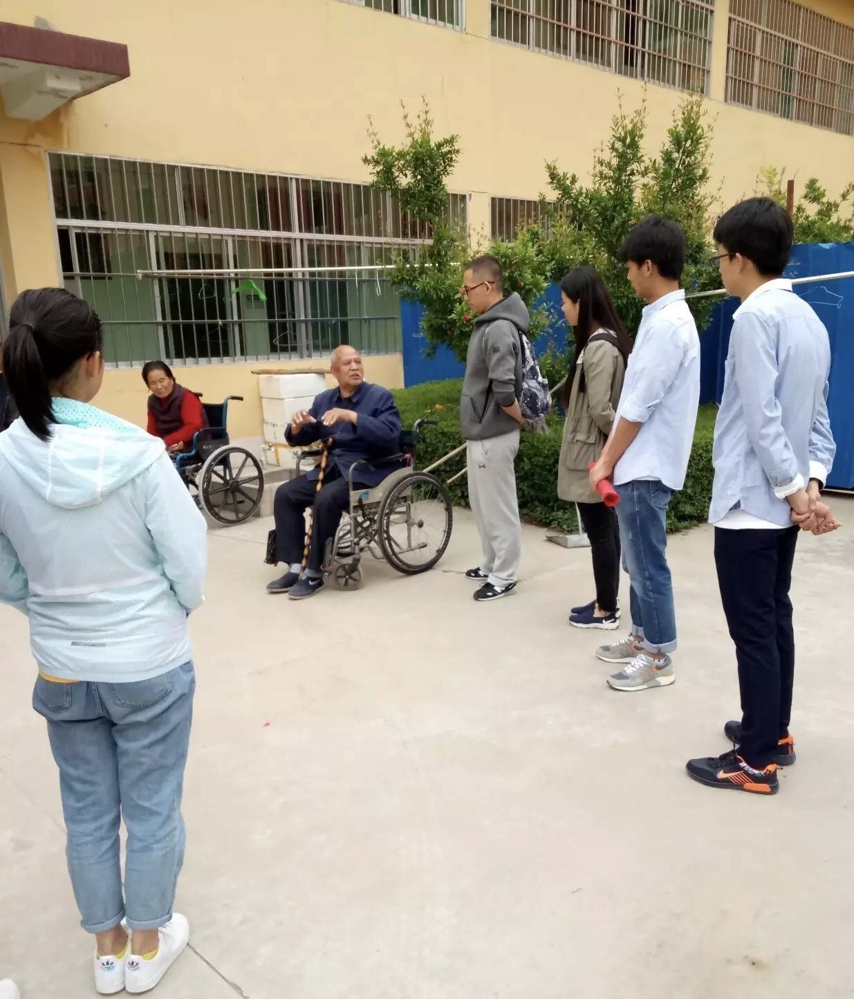 在余学文同志的带领下一行15余人,本着“阳光、奉献”的心情到达了金秋敬老院。首先,同学们帮助老人们清扫院落,对杂物进行分类整理,对花草树木进行了简单的修整。接着,同学们在征得老人们的同意后,认真地清理了他们的房间卫生,只为给他们营建舒适温馨的居住环境。最后,同学们陪着老人们在院子里散心、聊天。老人们特别开心学生们跟他们说话,听他们说话,院子里弥漫着温馨幸福的味道。聊到动情处,一位共产党老人说起了他在战火连天岁月中的故事,他告诉同学们一定要有吃苦耐劳的精神,要有钢铁般的意志。同学们还跟老人们讨论了热播剧《人民的名义》,老人们各个侃侃而谈,脸上始终挂着微笑。