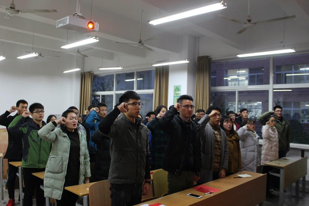 大会最后,杨松然作为领誓人带领全体党员宣读入党誓词,并对会议进行总结,表达了对新一届的党支部成员的欢迎,他也希望党员同志们应加强党的理论知识学习,并切身履行为人民服务的宗旨。