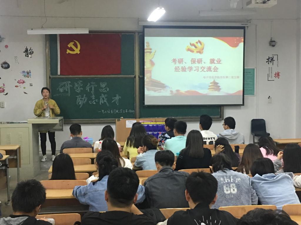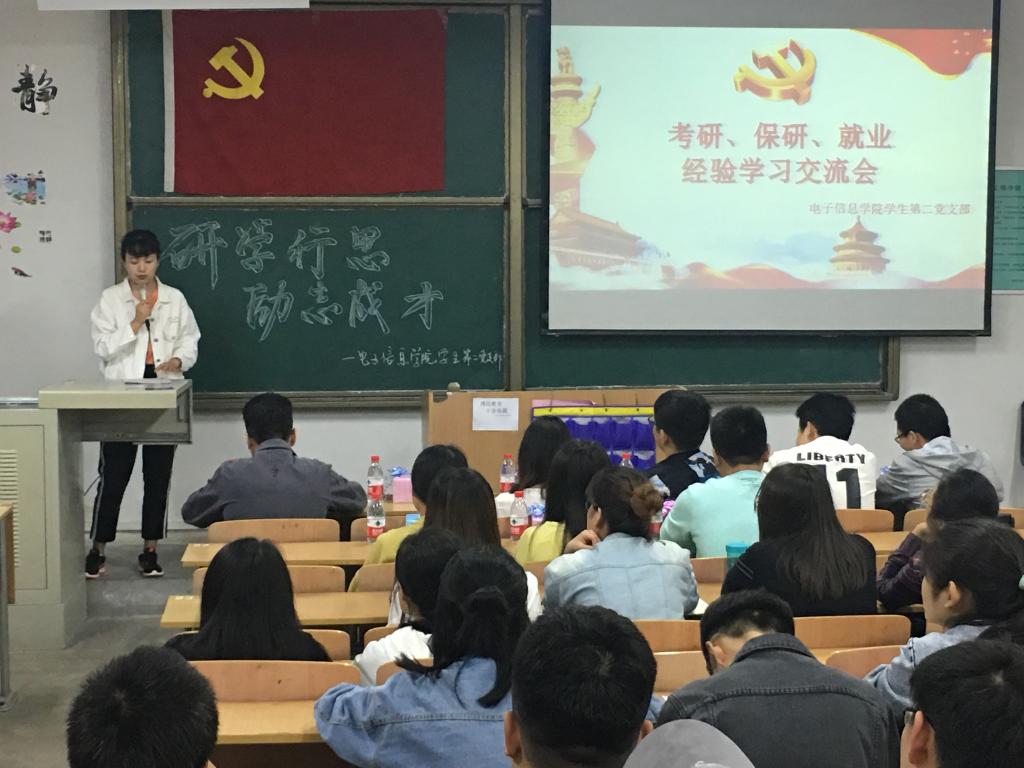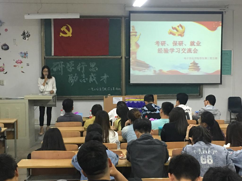 为进一步提高学生的考研、就业热情,明确目标,掌握相关技巧,了解更多考研、就业信息,4月22日晚,米兰·(milan)中国学生第二党支部在临潼校区A222教室举办主题为“研学行思 励志成才”的考研、保研、就业经验学习交流会。二支部所有党员、部分积极分子,及2014级已考入高校研究生、已签约工作的优秀学长学姐,共50余人参加交流会。本次交流会由严雪宁同志主持。