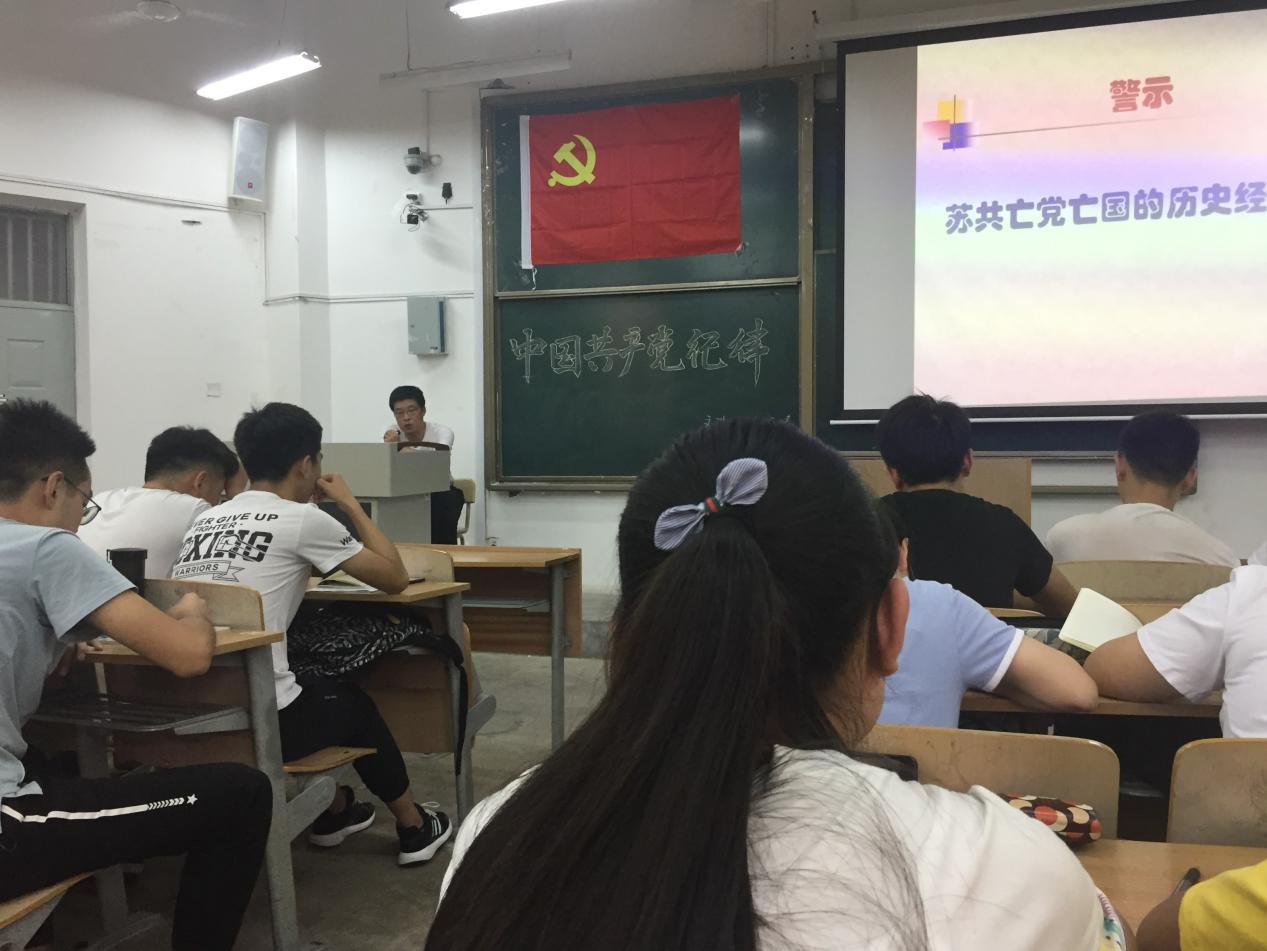 通过ppt的展示,曹智宇老师带领大家回顾了中国共产党诞生初期的艰辛,到现如今变得日益强大,这一段鼓舞人心、令人心潮澎湃的伟大经历。纵观历史长河,党的发展历程,取得的一切成就,是一代又一代中国共产党人不断奋斗的结果。他提到,作为一名即将加入党组织的积极分子,一名青年党员,更要不负这个伟大的新时代,在实现中国梦的实践中放飞青春梦想。