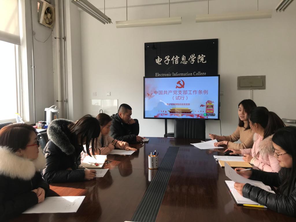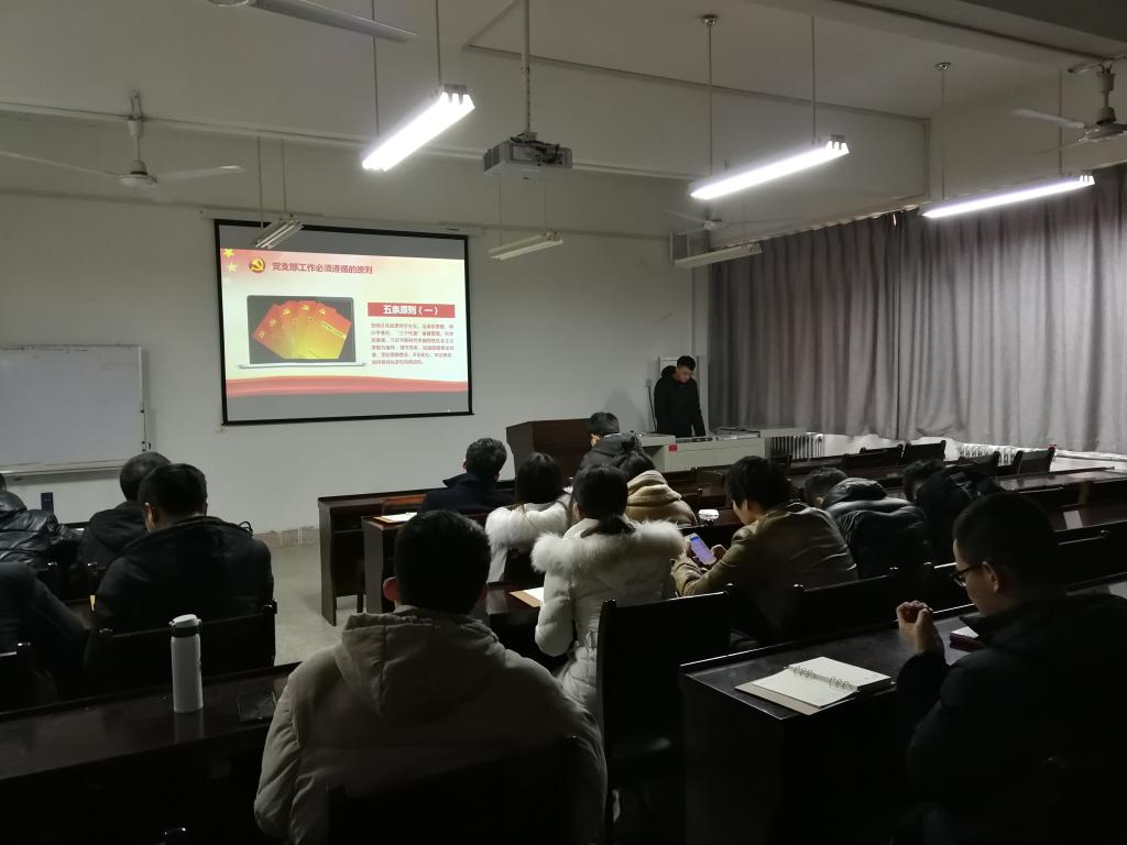 一是召开专题会议,组织党员集中学习。2018年12月26日,学院党委理论中心组成员及全体支部书记在415会议室召开了《中国共产党支部工作条例(试行)》专题学习会。同时在12月下旬,学院各党支部组织召开了《中国共产党支部工作条例(试行)》专题学习会。专题学习会上,院党委书记、支部书记带头专题辅导,对“条例”制定的背景和内容进行了深入解读,党员围绕学习“条例”各抒己见,进行了热烈的讨论。通过集中学习,学院全体师生党员更加深入了解了施行“条例”的重要意义,更加清楚支部工作的内容、程序和原则,使得“条例”精神深入人心。