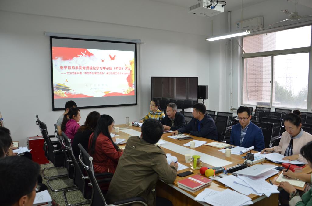 2019年9月19日下午5点,在电信楼302会议室,电子信息召开理论学习中心组(扩大)会议,专题学习2019年5月31日习近平总书记在“不忘初心、牢记使命”主题教育工作会议上的重要讲话精神,学院联系校领导朱永民副校长、理论学习中心组成员和全体党支部书记参加了专题学习,会议由学院党委书记杨恩科主持。