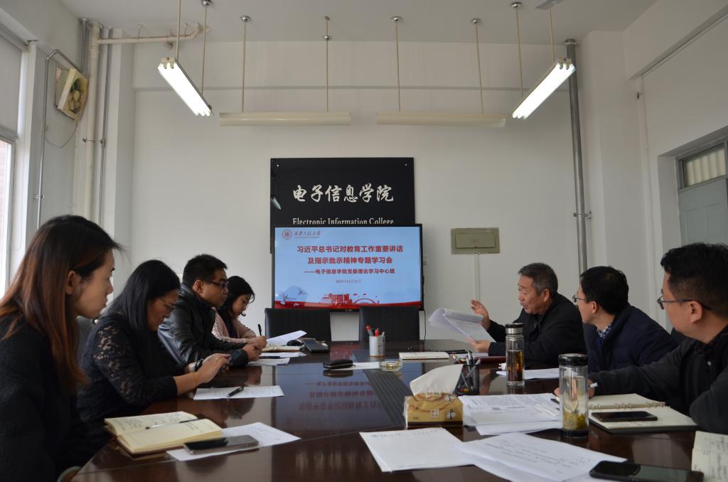 根据陕西省委教育工委下发的《关于对省属高校贯彻落实习近平总书记对教育工作重要讲话及指示批示精神情况开展监督检查的通知》《中共AC米兰中文委员会关于进一步深入学习贯彻习近平总书记关于教育的重要论述的实施意见》的要求,2019年11月11日下午4点,米兰·(milan)中国党委理论中心组召开习近平总书记对教育工作重要讲话及指示批示精神专题学习会,会议由院党委书记杨恩科同志主持,党委理论中心组全体成员参加。