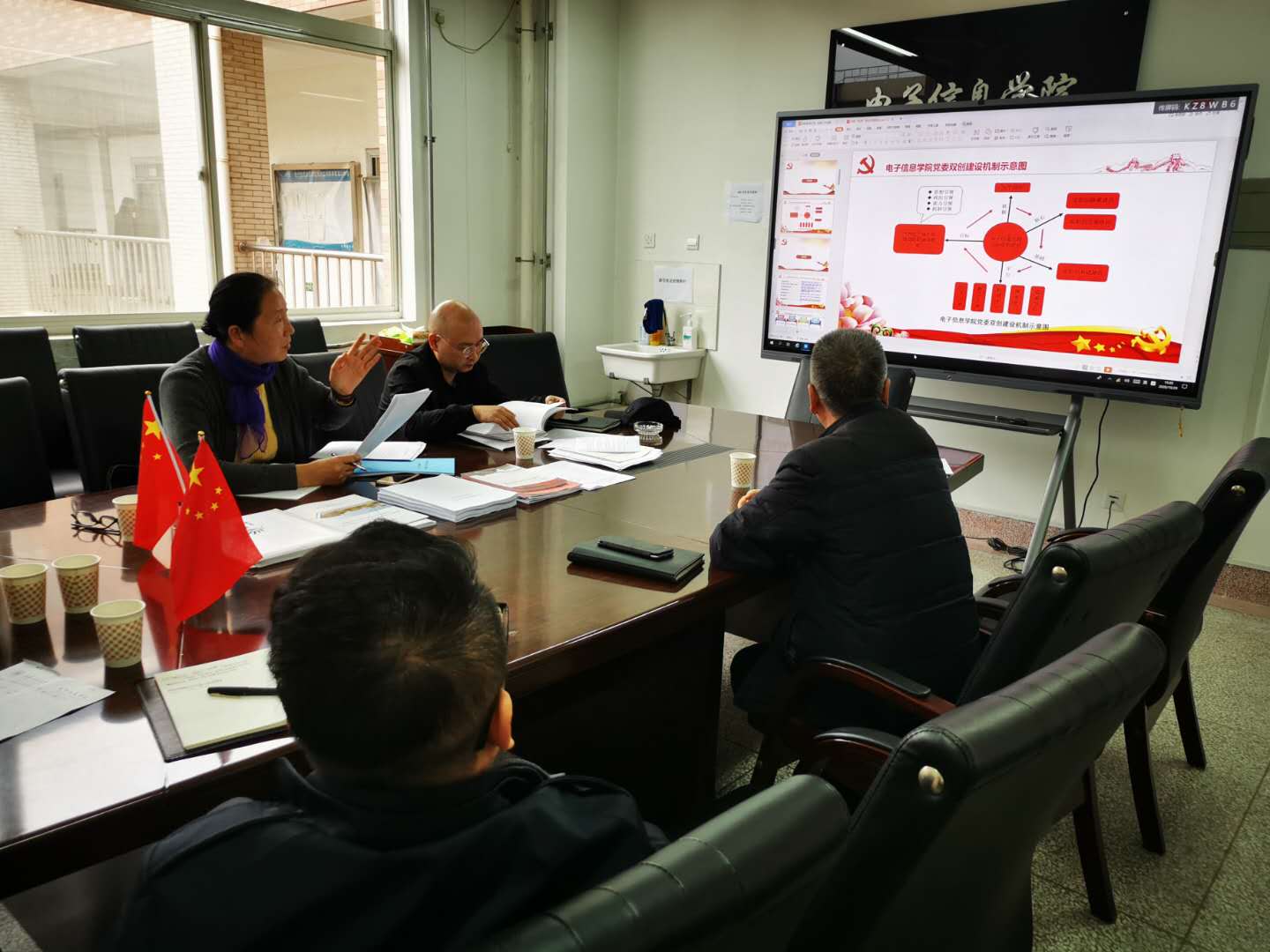 会上电信学院党委书记杨恩科、研究生第三党支部副书记刘润利分别对现阶段党委及支部党建“双创”工作进展情况做了详细汇报。杨恩科从建设思路、建设开展、工作模式亮点、对标任务完成情况等方面,对电信学院党建“双创”工作建设情况进行了整体汇报。他着重从党建引领教学科研谈起,介绍了学院党委近年来的一些亮点工作,尤其是在三全育人、教风学风建设和学院凝聚力方面取得的成绩。同时也具体分析了党建工作中存在的问题及相应解决措施,并对下一步工作思路进行汇报。刘润利对样板支部建设计划推进情况、工作保障措施、主要成果展示及下一步工作打算和努力方向进行了汇报。