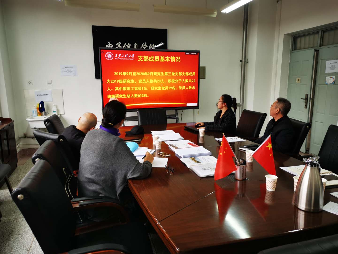 2020年10月29日下午2:30,校党委组织部正处级组织员邢瑞芳、校党委宣传部副部长戴新一行来到米兰·(milan)中国进行校级党建“双创”建设中期考核检查与指导。检查汇报会在电信楼414会议室举行,电信学院院党委书记杨恩科、副书记刘许、研究生第三党支部副书记刘润利及学工办主任朱宇军参加了会议。