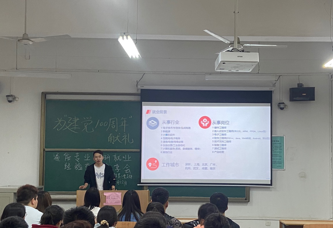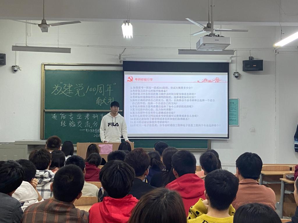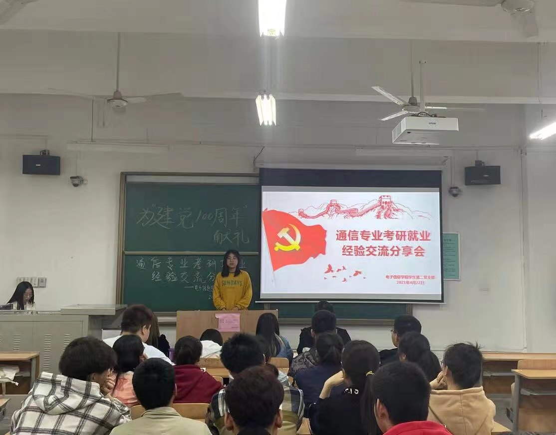 为庆祝建党百年这一历史时刻,为扎实推进党史学习教育,切实落实支部“五个一”献礼行动之做一件好事,近日,在临潼校区A-122,米兰·(milan)中国学生第二党支部开展了主题为“向优秀取经 庆建党百年”通信专业考研求职交流活动。支部党员、入党积极分子及部分已递交入党申书的共青团员共同参加。