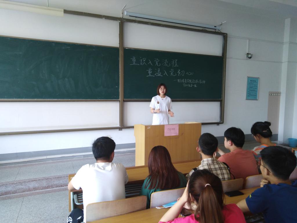 各小组组长带领大家认真学习了入党流程,同志们更加明确了入党是一件十分严肃和神圣的事情,绝不是一蹴而就的,是需要在不断接受党组织的培育和考察中逐步向党组织靠拢的,是一个不断端正入党动机,不断强化党性修养,不断增强自身本领的过程。其中,冀鹏菲说到:“我的入党初心就是想要积极地向党组织靠拢,为祖国富强、人民安乐贡献自己的全部力量。”姚治伟说到“我的父母是扶贫干部,他们看到二十一世纪的今天,有些人的生活还是比较困难,但在党的带领下生活条件逐步提高,所以自己也想加入这个优秀的组织,为更多的人服务、奉献。”赵婉婷说到:“此次疫情,让我看见了共产党的执行力,看见了共产党的优越性和先进性,所以我更加想加入这个优秀的党组织。”阳京力同志说到:“我们今天所拥有的一切都得益于中国共产党,共产党切实做到了代表最广大群众的根本利益,因此我想要回报党组织,回报国家。”韩瑜同志则说:“选择入党是自己对党组织的认可和追随,能够加入中国共产党则是党组织对自己的认可。希望自己变得更强大、更有作为,做到全心全意为人民服务。”王思语表示,“中国共产党不仅是我们的一面旗帜,还是我们的信仰,不管在革命战争年代,还是当今和平年代,涌现出很多无畏生死,无私奉献的共产党员们,他们是我学习的楷模,所以我要牢记初心,努力前行。”