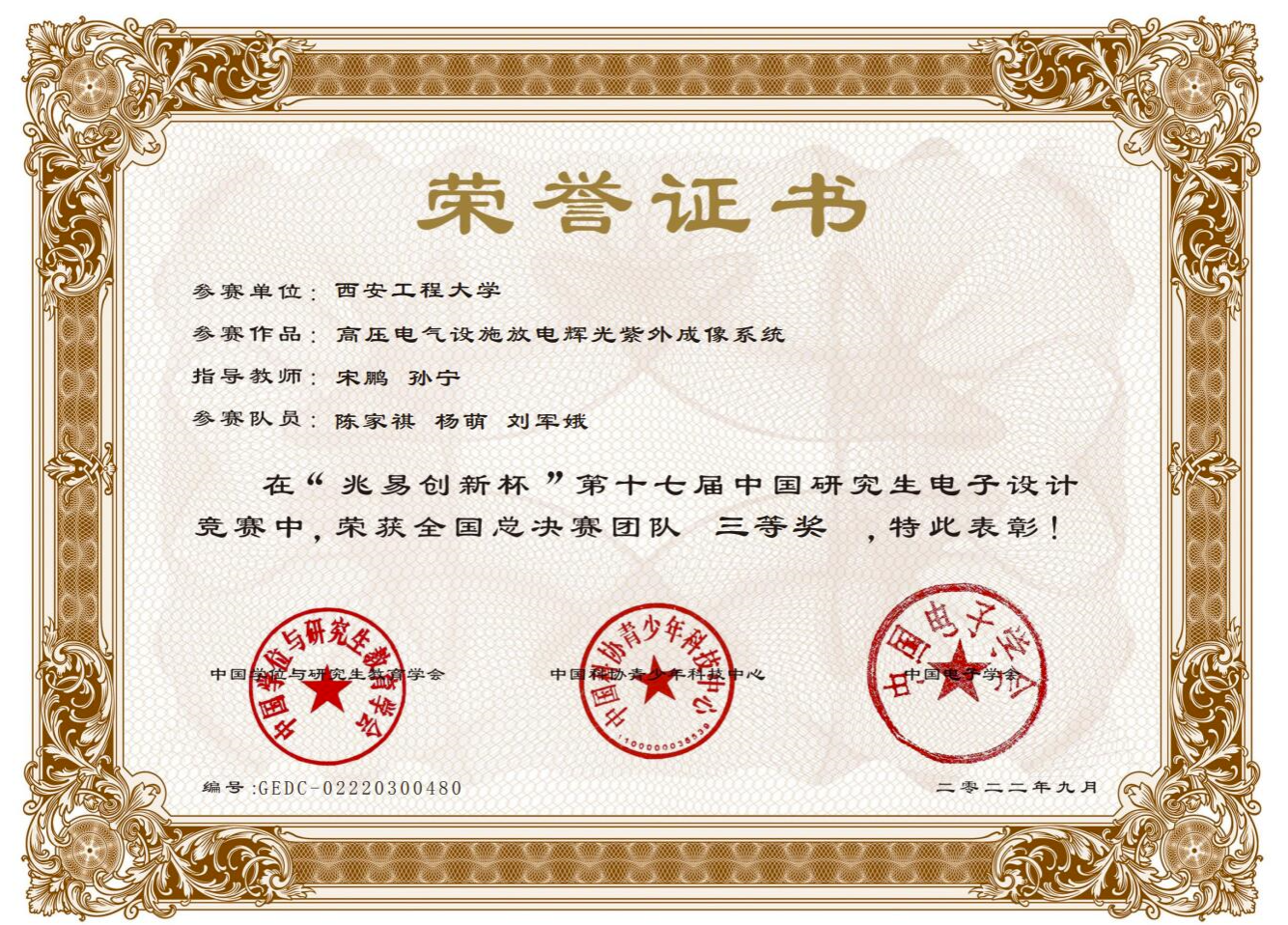 西安市科学技术三等奖 |