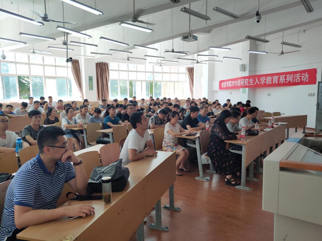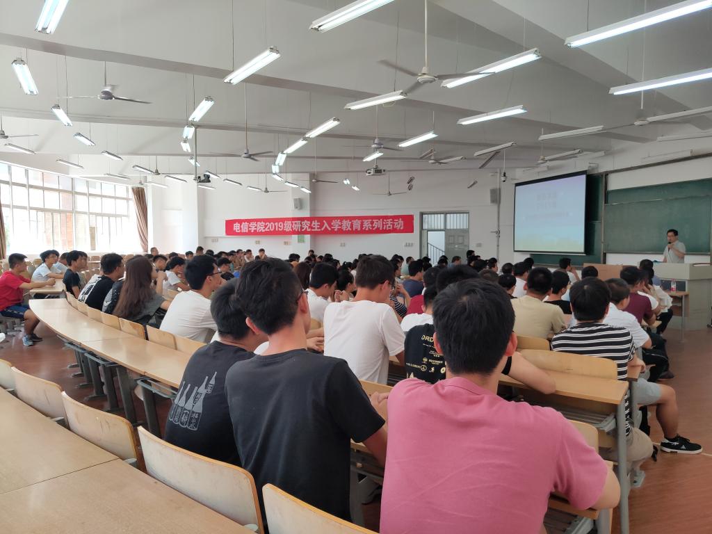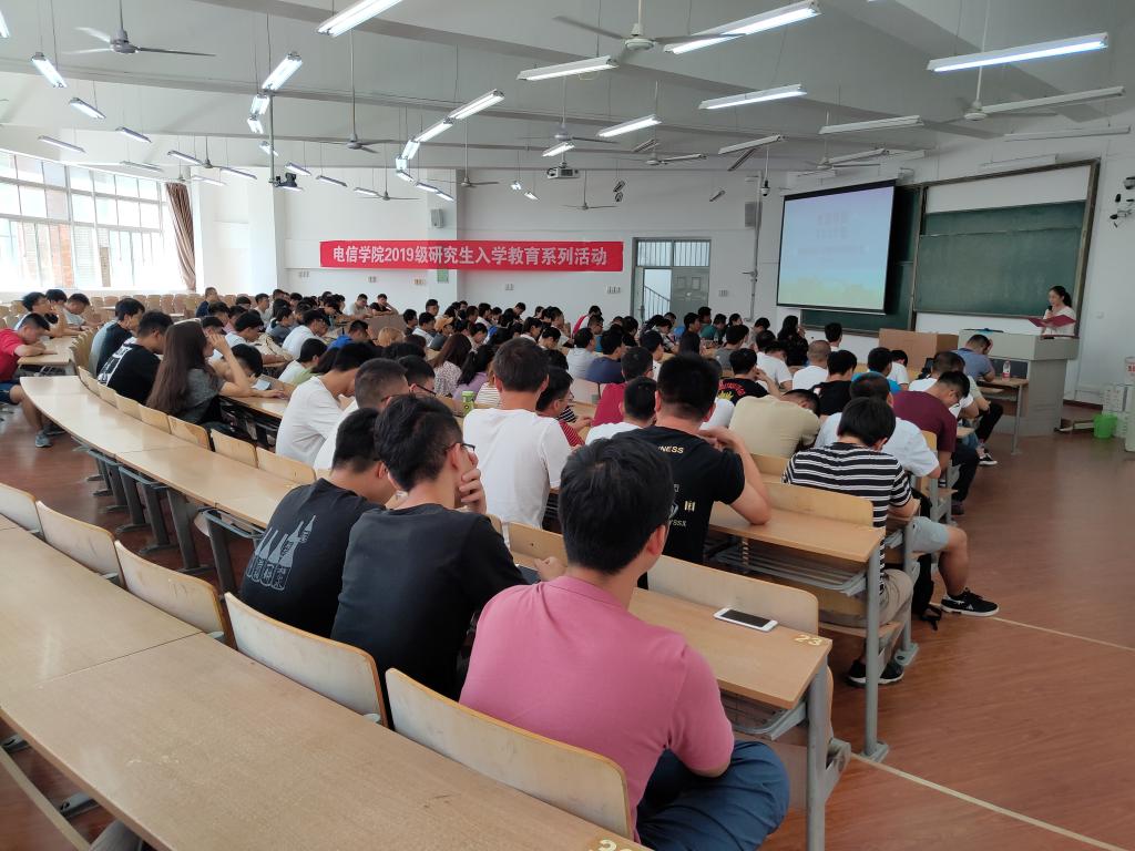 近日,电信学院在教学楼B-133举行了2019级研究生新生入学教育暨导师推介会。电信学院党委副书记刘许,电信学院副院长张蕾副教授及各系主任、研究生导师出席会议。2019级全体研究生及研究生教学秘书行露老师、研究生辅导员赵立涛老师参加了会议。