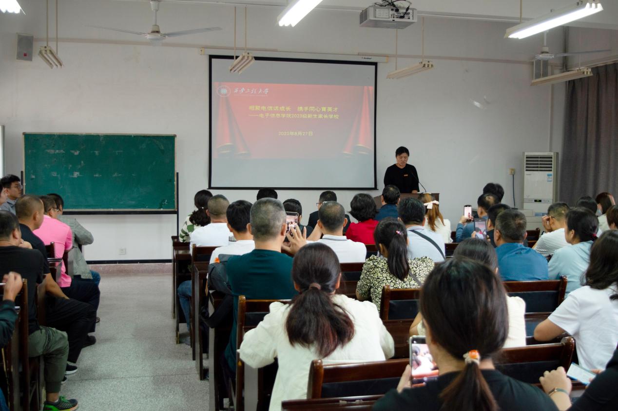 8月27日下午14:30,米兰·(milan)中国在临潼校区电子信息楼419会议室召开2023级新生家长会。米兰·(milan)中国党委书记杨友谊、院长景军锋、副院长张蕾、副院长朱磊、各系部主任及实验中心主任、教务员、全体辅导员和新生家长参加了本次活动。活动采取线上线下同步进行的方式,学院党委副书记周晓惠主持。
