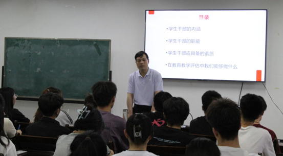 学院党委书记杨友谊结合本科教育教学审核评估的目标与要求,于2024年6月3日晚为我院团学干部讲授思政课,他指出,作为中国共产党的助手和后备军,广大团员青年尤其是团学干部要严于律己,以身作则,争做遵守校规校纪的典范;以自身具有的号召力带动其他同学共同进步,共同营造积极向上的良好氛围;要充分发挥好助手桥梁作用,协助学校的各项工作顺利有效地组织和开展。作为一名团学干部,要有担当,有作为,要有决策力、组织力、创新力,提高解决问题的针对性和效率,促使党团组织工作形成良性循环。此次思政课内容丰富、针对性强,对广大团学干部的成长与发展具有重要的指导意义,是党建带团建的有力体现,也为学校党的青年工作提供了坚实的组织保证。