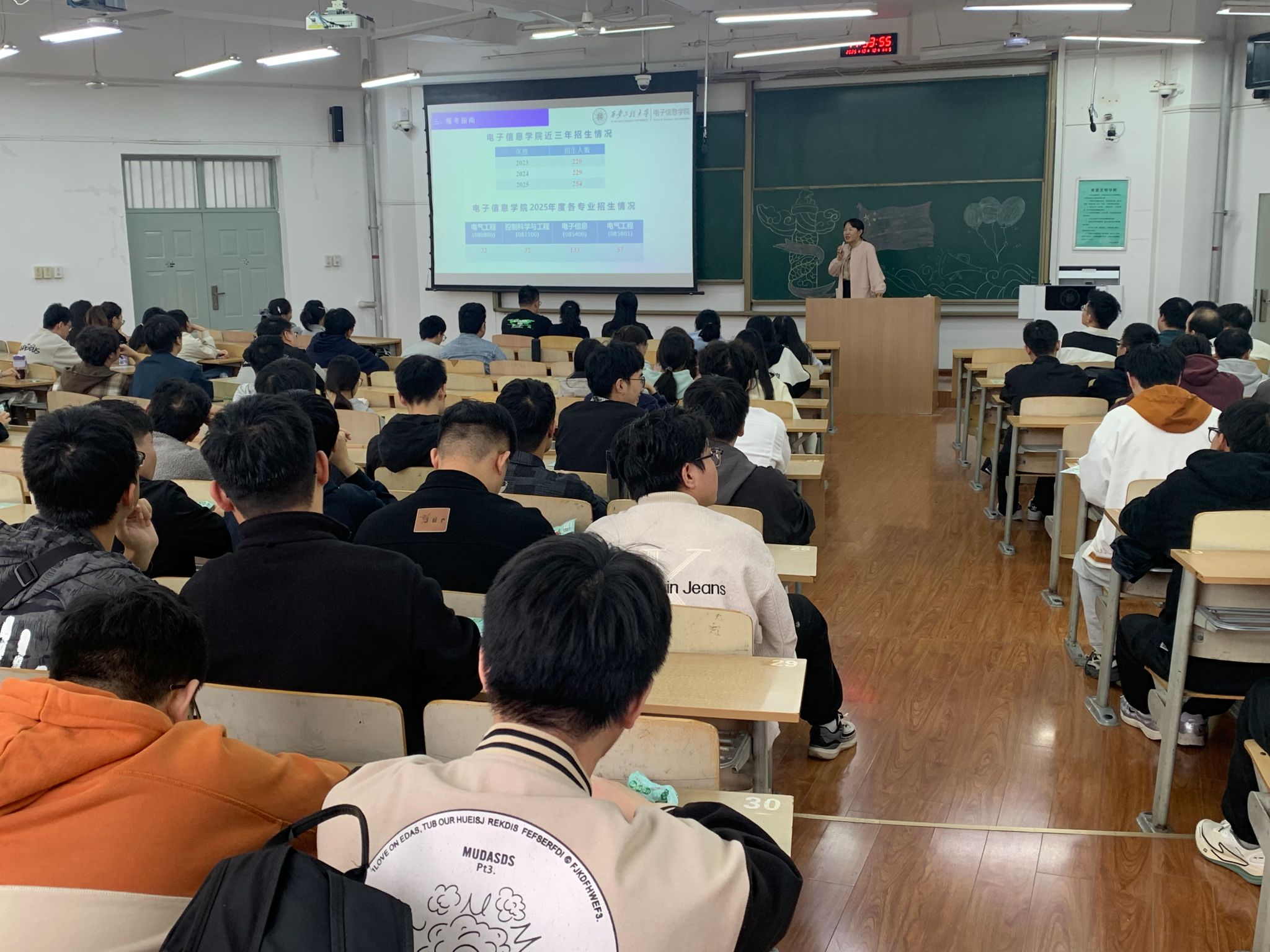 张蕾围绕学院硕士研究生招录和人才培养方案,重点从学科建设、师资力量、科研竞赛成果等内容进行了详细全面的介绍,针对同学们普遍关心的学术型与专业型硕士选择、目标院校定位等关键问题进行了细致解答,致力为同学们扫除迷雾,指明报考方向。