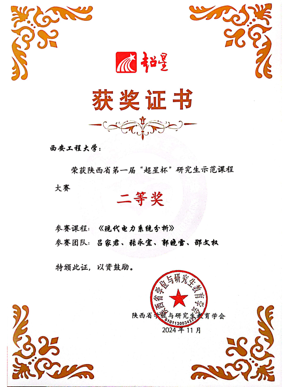 我院吕家君老师团队的现代电力系统分析课程,在陕西省第一届“超星杯”研究生示范课程大赛上荣获二等奖,AC米兰中文荣获大赛优秀组织奖。