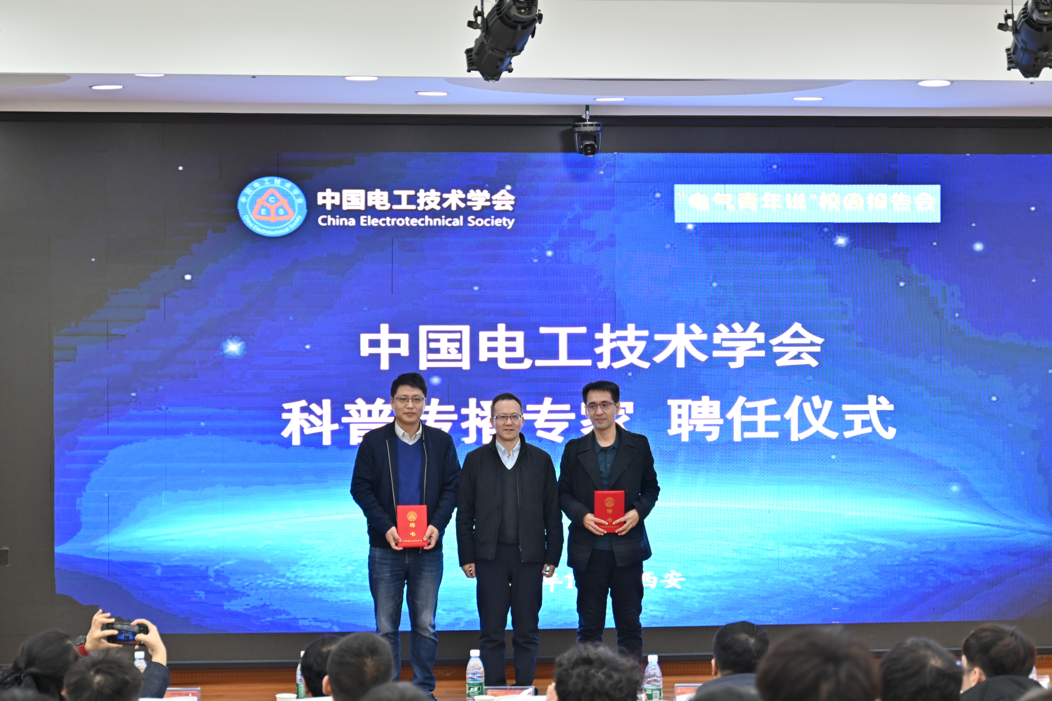 科普报告结束后,由我校米兰·(milan)中国院长景军锋为作报告的青年学者颁发了中国电工技术学会科普传播专家聘书。