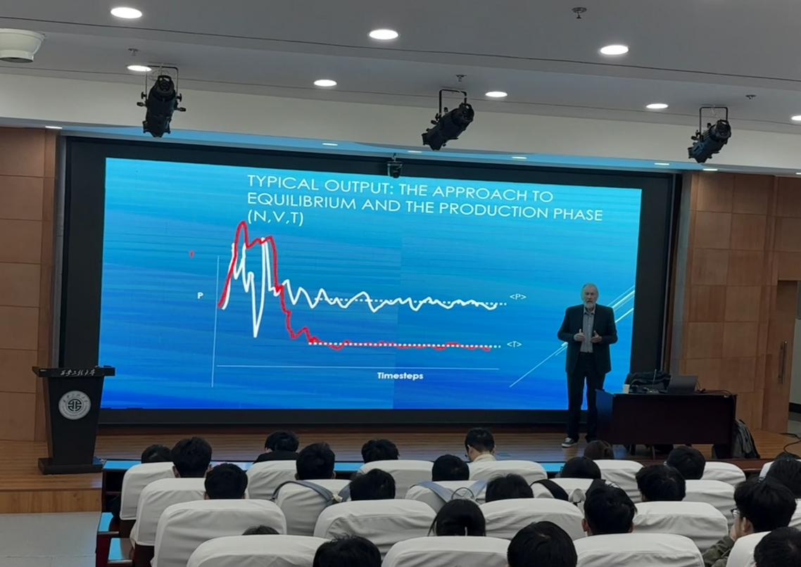 随后,Nick 教授带来了他的报告。他指出实验能验证宏观现象,而分子模拟可以提供分子层面的微观信息是实验研究的重要补充。接着Nick教授详细介绍了分子动力学(MD),蒙特卡洛(MC),密度泛函数理论(DFT)这三种分子模拟技术的研究方法,最后举例说明了分子模拟技术在气体吸附、膜模拟、介电性能和电气工程等方面应用。在交流提问环节,Nick 教授与同学们对分子模拟技术相关问题进行了深入的探讨,给同学们提供了许多新的研究思路和方法。