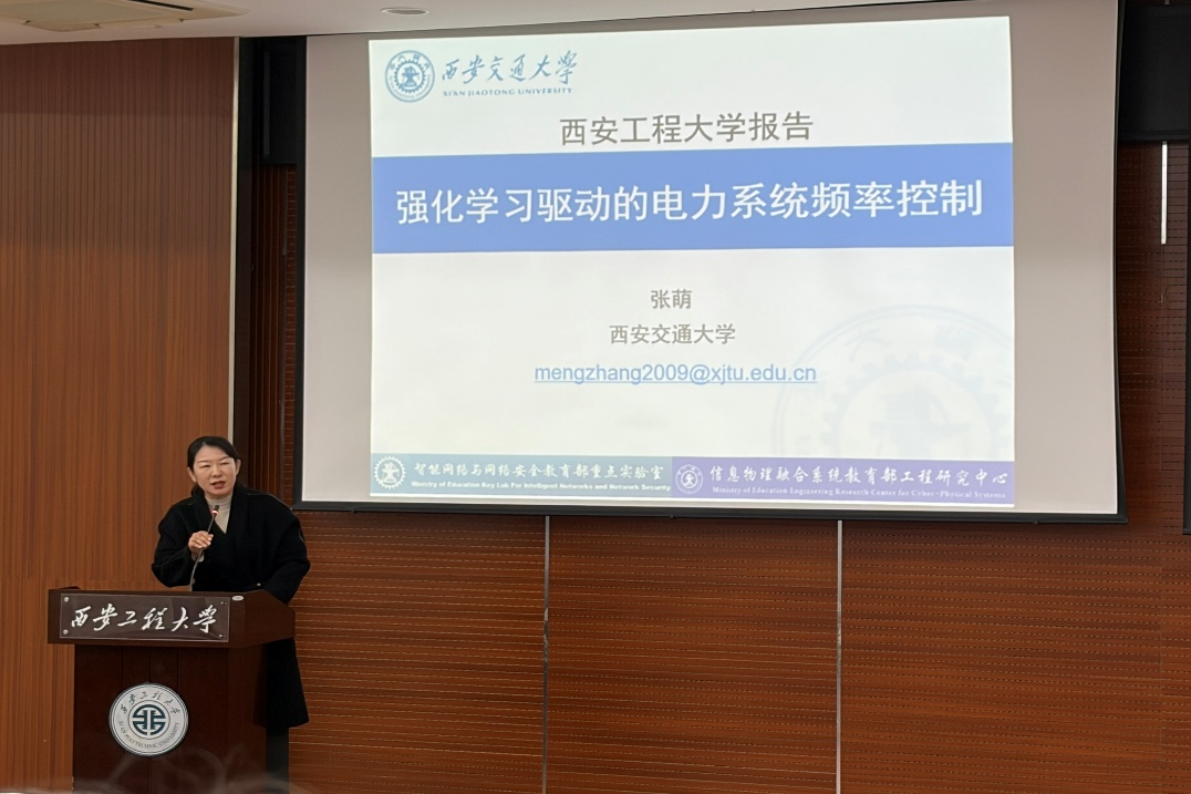 在核心报告环节,张萌教授围绕 “强化学习在电力系统控制中的创新应用” 展开系统且深入的分享。他首先立足当前电力系统向智能化、多元化转型过程中面临的非线性、不确定性等复杂挑战,深刻剖析了传统模型驱动控制方法在适应性、实时性等方面的局限性。在此基础上,张萌教授详细阐释了强化学习作为数据驱动技术的核心优势 —— 通过智能体与环境的动态交互自主学习最优策略,为解决复杂电力系统控制难题提供了全新思路。随后,他结合自身团队的研究实践,通过多个典型应用案例,生动展示了强化学习在智能电网优化调度、新能源安全稳定接入控制、微电网协同运行优化等关键领域的突破性成果,用详实的数据和清晰的逻辑,让在场师生直观感受到该技术在提升电力系统运行效率、可靠性与经济性方面的巨大潜力。